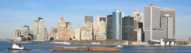 De Staten Island Ferry geeft gratis een prachtig uitzicht op de zuidkant van Manhattan en het vrijheidsbeeld. | ![]() |