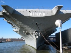 | De Intrepid, een vliegdekschip in de haven van New York | |||