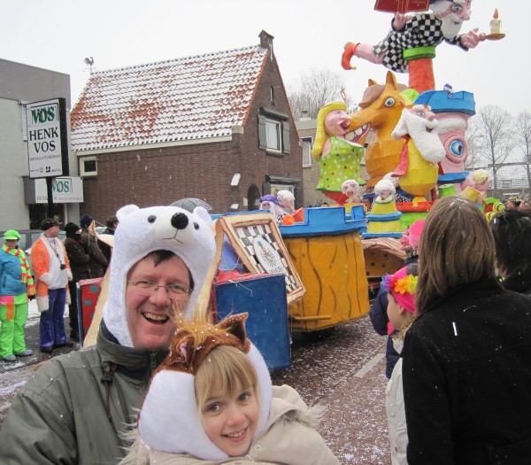 Zondag voor onze vakantie naar Egypte, gaan we nog even bij Oma Riekje langs in Brabant. Zo kunnen we nog mooi iets meemaken van de carnaval. Het is een mooie optocht. Marion heeft wat last van haar rug en blijft bij oma Riekje. Willemijn verkleed als hamster, Janwillem met zonnebril en Maarten als ijsbeer, gaan door de Hoge Ham met de optocht mee. |