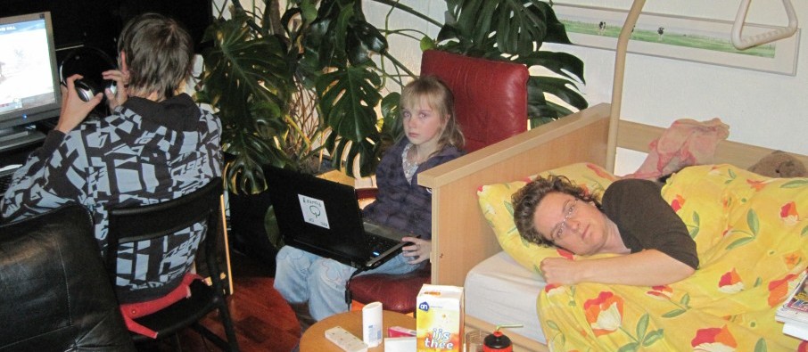 | We laten een ziekenhuisbed komen via ons lidmaatschap van ICARE. Zo blijft Marion nog een beetje meemaken wat er in huis gebeurd. Het is knap hoe ze het geduld kan opbrengen. | ||