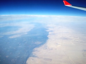 | We vliegen vanaf Düsseldorf. Ondanks dat we de avond ervoor al kunnen inchecken, moeten we toch om 4:15 uur opstaan. Als we over Egypte vliegen hebben we goed zicht op de woestijn en zien prachtig dat de Nijl die doorsnijdt. | |||||||||