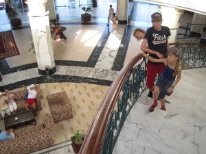 | Het hotel heeft een grote lobby met een marmeren show-trap. | |||||||||