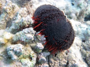Collector urchin: een zeekomkommer die meer dan een meter lang is. |