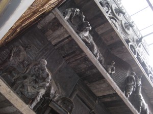 Alles is prachtig gestijld met bronzen beelden. In de winkel met de twee robots staan later mensen te dansen aan de muur. Grappige posters op de kroegen (let op de foto ernaast) |
