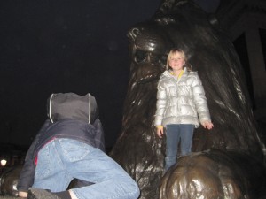 In de avond beklimmen we Nelson's column op Trafalgar Square. |