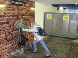 De laatste dag toch nog even naar peroon 9 3/4 uit de Harry potter boeken. Hier vertrok de trein naar Zweinstein. Het peroon zit verstopt achter een muur waar je doorheen kunt lopen. |