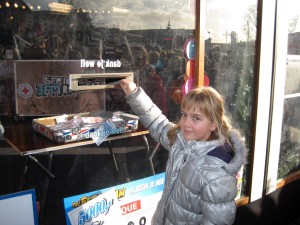 | Voor 5 euro kun je proberen zeven meter omhoog te klimmen langs een klimmuur. Willemijn is niet te houden. Zeker 15 kinderen voor haar lukte het niet de top te bereiken. Willemijn gaat als een speer. | |||
