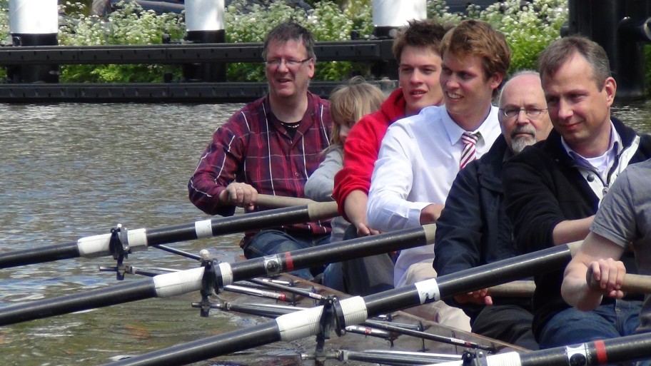 | Het is ouderdag op de roeivereniging van Janwillem in Delft en we gaan op bezoek. Uiteindelijk belanden we allemaal in een roeiboot. | ||