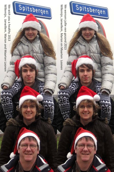 | Voor de nieuwjaarskaart zijn we weer met het gehele gezin naar Spitsbergen gegaan. Voor de derde keer kwam onze kaart daar vandaan. Eerdere versies zijn hier te bekijken. | |