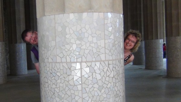 | Parc Guell, ontworpen door Gaudi, op het terras | en een verdieping lager in de zuilengallerij |