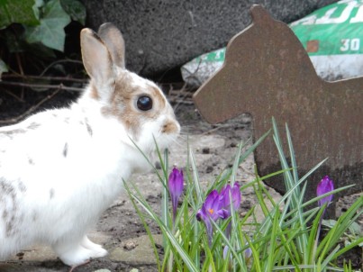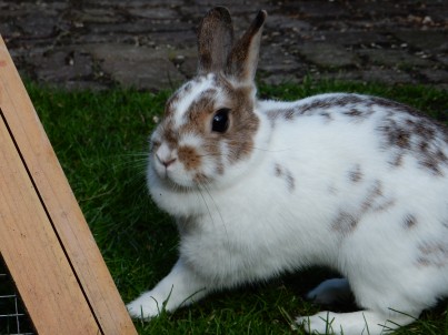 | Vandaag is Willemijn's dwergkonijntje Polo onverwachts overleden. Ze was vanmiddag ineens mat en vanavond viel ze in een drukke bui ineens weg. Altijd als Willemijn thuiskwam van school werd er geknuffeld. Een lief huisgenootje is er niet meer. Ze was geboren 16 juni 2012 en overleden op 6 april 2014. | ||