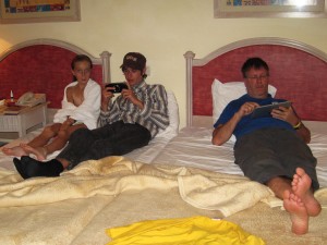 | Na een korte transfer staan we bij ons hotel, waar we een twee-persoonskamer met twee extra bedden delen. Willemijn krijgt een eigen tent tussen de gordijnen. | |||||||||