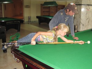 | Willemijn is op de voorlaatste dag jarig. Ze heeft speciaal een kroontje meegenomen voor het verjaardagsgevoel. Maar dat krijgt ze helemaal als de kado's uitgepakt worden. Een rammelhesje en een tasje. Willemijn heeft gekozen om met zijn vieren te gaan biljarten. Janwillem blijkt de beste en geeft les aan haar. | |||||||||