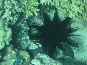 Collector urchin: een zeekomkommer die meer dan een meter lang is. |