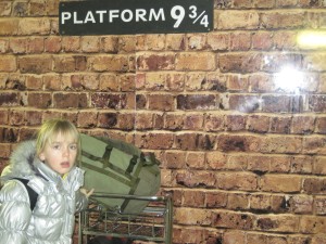De laatste dag toch nog even naar peroon 9 3/4 uit de Harry potter boeken. Hier vertrok de trein naar Zweinstein. Het peroon zit verstopt achter een muur waar je doorheen kunt lopen. |