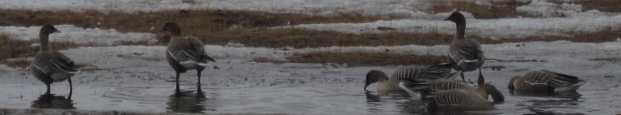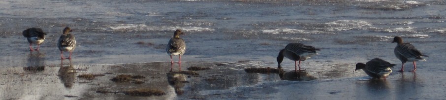 We rijden Adventdalen in en tellen xx brandganzen en xx kleine rietganzen. Daarnaast lezen we ook ringen en halsbanden