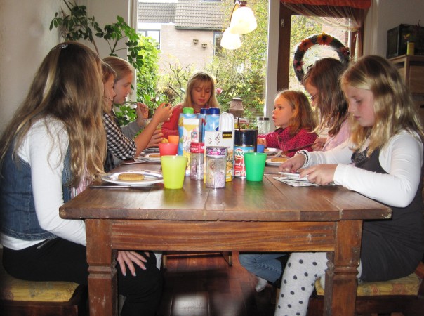 | We zijn gaan zwemmen in het "drakenzwembad" in Assen. De weg er naar toe was een speurtocht met trein en bus. Het begon met blindemannetje om de kado's te ontvangen, daarna taartje versieren, ballonnen tot honden draaien (les van Janwillem) en een tas vol lekkers inpakken. Daarna te voet op weg naar het station. | ||