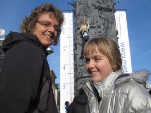 | Voor 5 euro kun je proberen zeven meter omhoog te klimmen langs een klimmuur. Willemijn is niet te houden. Zeker 15 kinderen voor haar lukte het niet de top te bereiken. Willemijn gaat als een speer. | |||