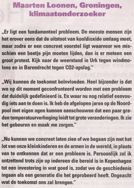 De Leeuwarder Courant besteed aandacht aan de klimaattop in Kopenhagen. De redacteur wil graag een aantal meningen bij het stuk plaatsen en vraagt de mijne.