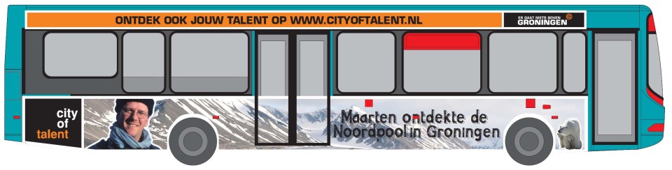 De campagne Groningen City of Talent wordt georganiseerd door de gemeente, provincie, hanzehogeschool en universiteit. De campagne is speciaal gericht op jonge mensen. Ik ben gevraagd door de Universiteit om mee te doen aan de campagne. In een geluidsstudio heb ik 30 keer dezelfde zin moten zeggen, soms met harde wind op mijn oren. Door op de video hierboven te klikken hoor je het resultaat. Zie ook: www.cityoftalent.nl | |