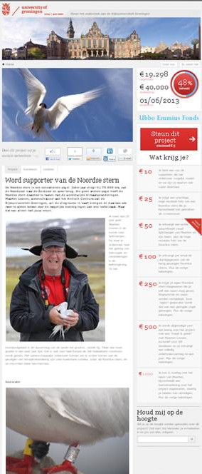 Ik heb veel plannen, maar poolonderzoek is duur. Van de andere kant is er veel belangstelling voor poolonderzoek vanwege de zichtbare gevolgen van klimaatverandering in de poolgebieden. Die twee zaken zijn te combineren door crowd-funding. Verbind mensen en bedrijven met een onderzoek door informatie uitwisseling en sponsoring. Ik liep al enige tijd met dat idee, gebaseerd op bezoeken aan de verenigde Staten, waar dit veel vaker gebeurd. En nu is dat in een stroomversnelling geraakt. Twee instanties helpen mij op mijn plannen te verwezelijken en proberen sponsoren te trekken. Het Ubbo Emmius Fonds van de Rijksuniversiteit Groningen heeft de site gelanceerd rugsteuntstern.nl, en richt zich op alumni. Flintwave is een bedrijf dat bedrijven en personen benaderd voor steun aan de expeditie naar Edgeöya, waarvoor we eerder de Academische Jaarprijs 2012 probeerde te winnen. Op flintwave.com introduceren zij het plan. |