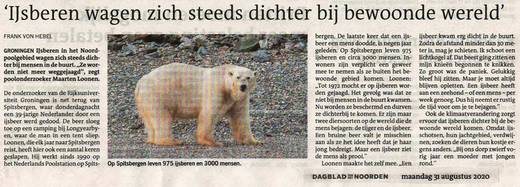 IJsberen wagen zich steeds dichter bij de bewoonde wereldDagblad van het Noorden maandag 31 augustus 2020